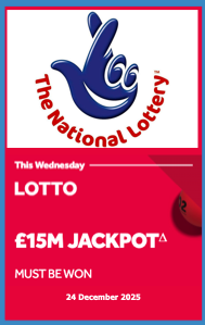 UK Lottery ‘Jackpot’ or one of the other huge prizes, as anyone else! We will pay your winnings from the